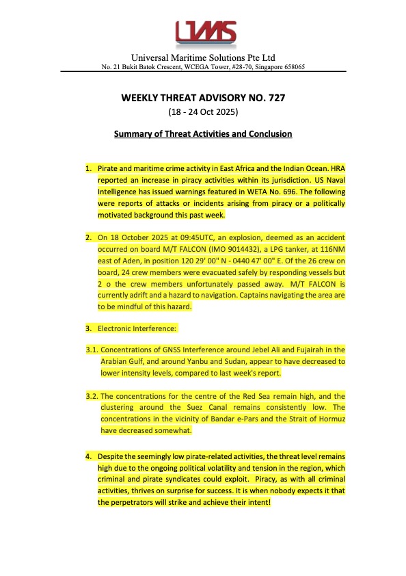 WETA is a system created for the headquarter to keep relevant parties, especially our Maritime Marshals, informed. It is sent on a weekly basis and it contains threat acitivies happening around the HRA from various sources and is consolidated in summary.