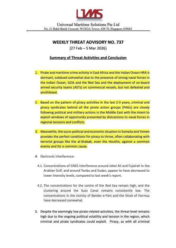 WETA is a system created for the headquarter to keep relevant parties, especially our Maritime Marshals, informed. It is sent on a weekly basis and it contains threat acitivies happening around the HRA from various sources and is consolidated in summary.